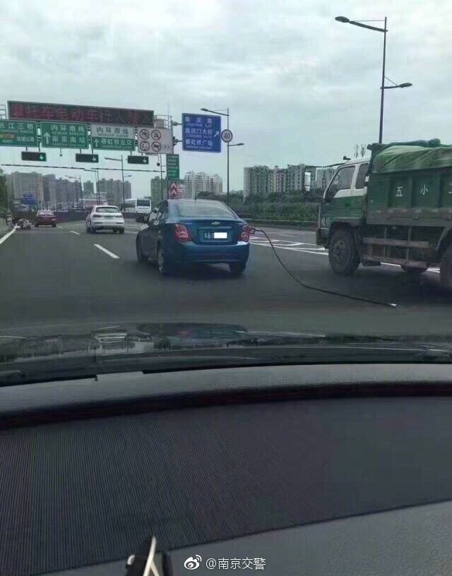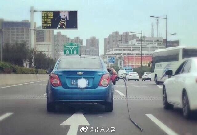 据南京市公安局交通管理局消息,7月8日15:30,报警人称在城西干道往虹悦城方向一辆苏A小车,拖着一根加油站油枪管行驶,南京交警八大队与车主取得联系后确认,车主在汉中门加油站加油付完钱后,由于加油站工作人员较忙,加上车主本人为新手,付完钱后直接开车离开,发现后已将加油枪归还并报保险公司。