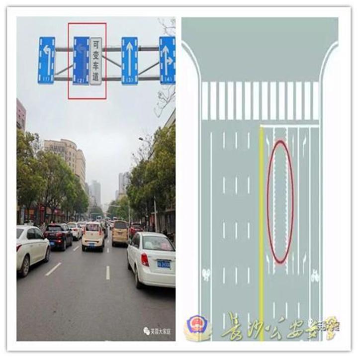 在此芙蓉交警也要提醒所有驾驶员:可变车道并不是一条既能直行又能左转的车道,但是驾驶员遇到可变车道时,不用慌张,只要一看锯齿形车道;二看白色指示灯;三看可变车道专用信号灯,就能避免出错被罚。